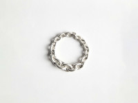 Chain-link bracelet in 18kt white gold. Handmade in London with a local craftsperson, drawing from Jonathan Anderson's interest in Victorian jewellery. Features a degrade link construction with a miter clasp closure inspired by woodworking techniques. Finished with a hand-engraved logo and hallmark on the link next to the clasp; weight adjusted for comfort and wearability. Details - Colour: White - Composition [Main]: 100% 18kt Gold - Made in: United Kingdom - Customer Note: Custom sizing available upon request - SKU: JY0269OT0090001