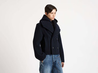 Crafted in the UK, this wool cropped peacoat features a splitable double-faced finish, in a fabric historically used for utilitarian outerwear. Features a removeable hood, finished with horn buttons. A garment fully fabricated and constructed in the UK. Details - Colour: Navy - Composition [Main]: 100% Wool - Composition [Lining]: 100% Cotton - Made in: United Kingdom - Model [Wears]: Size XS, 180cm Tall - SKU: CO0340PG1870888