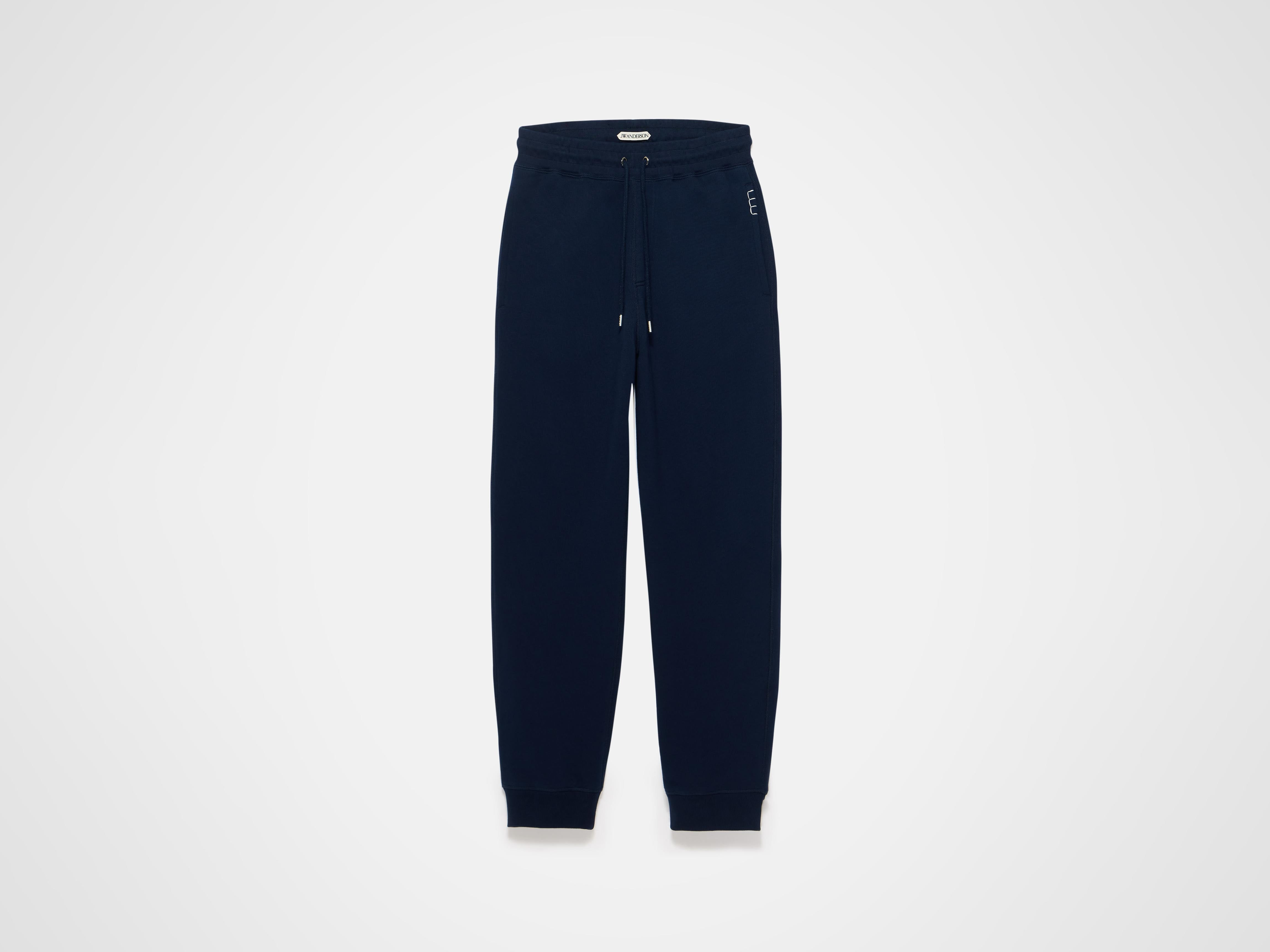 Cuffed sweatpants in navy jersey. Features an elasticated waist and adjustable drawstring, with cuffed hems. Finished with loafer stitching details on the pockets. Details - Colour: Navy - Composition [Main]: 100% Cotton - Made in: Portugal - Model [Wears]: Size S, 184cm Tall - SKU: JR0057PG1901888