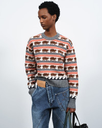 Inspired by the Nicholas Mosse ceramic pig design. Fairisle pig jumper in red midweight knit. Features a regular fit, finished with contrast rib trims. Details - Colour: Red - Composition [Main]: 100% Lambswool - Made in: United Kingdom - Model [Wears]: Size S, 178cm Tall - SKU: KW1480YN0453459