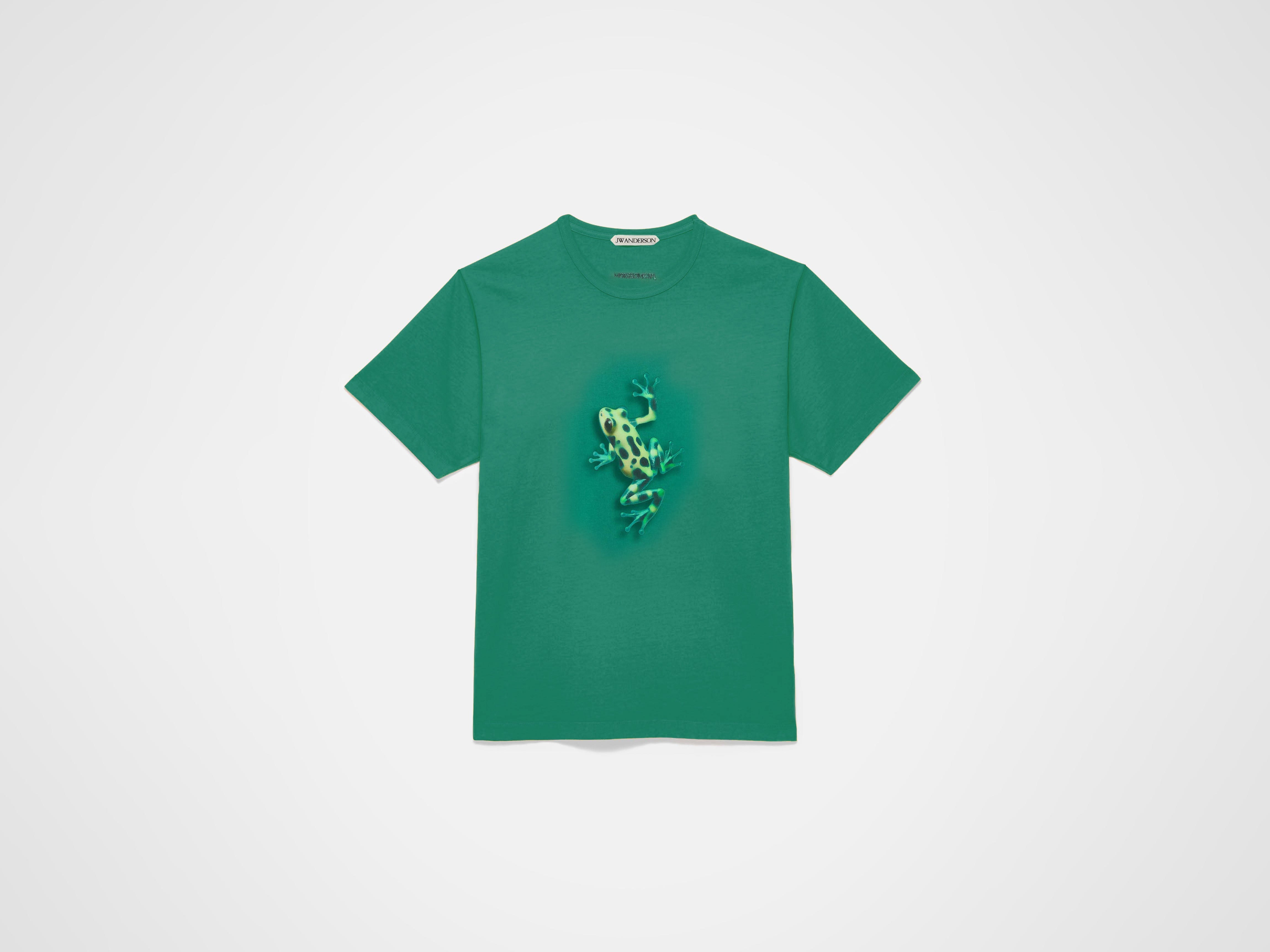 T-shirt in emerald with a digital hybrid print of a jumping frog, in a washed appearance. Classic silhouette tee with a crew neck. Finished with baseball stitch at the hem. Details - Colour: Emerald - Composition [Main]: 100% Cotton - Made in: Portugal - Model [Wears]: Size S, 189cm Tall - SKU: JT0308PG1937540