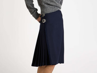 Crafted in Selkirk, Scotland, this classic kilt has been developed in collaboration with heritage Scottish kilt specialists. Features side pockets, side leather strap adjusters with buckle. Finished with a leather logo patch. Locharron of Scotland is one of the world's leading tartan manufacturers, producing traditional Highland dress and textiles in the Scottish Borders since 1947. Their fabrics are woven in-house using time-honoured techniques, rooted in heritage, craftsmanship, blending tradition with elevated, modern quality. This collaboration honours the storytelling embedded in tartan, where identity, history and place are woven into each thread, reinterpreted through JW Anderson's lens of material innovation and silhouette. Details - Colour: Navy - Composition [Main]: 100% Wool - Made in: United Kingdom - Model [Wears]: Size S, 189cm Tall - SKU: SK0197PG1909888