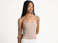 KNITTED POINTELLE CAMI TOP IN TAUPE