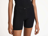 KNITTED POINTELLE FITTED SHORTS IN BLACK