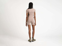 KNITTED POINTELLE FITTED SHORTS IN TAUPE
