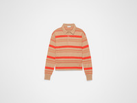 Knitted striped rugby polo top in contrast biscuit matte cotton and high-shine viscose, featuring anchor logo embroidery with horn buttons. Details - Colour: Biscuit - Composition [Main]: 45% Cotton, 29% Viscose, 26% Wool - Made in: Italy - Model [Wears]: Size M, 189cm Tall - SKU: KW1521YN0457145