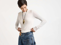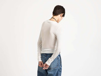 Long sleeve crew neckline underpinning top in sheer off-white jersey. Features a printed logo on the back of the neck. Details - Colour: Off White - Composition [Main]: 100% Micro Modal - Composition [Contrast]: 98% Micro Modal, 2% Elastane - Made in: Portugal - Model [Wears]: Size S, 180cm Tall - SKU: JO0292PG1904002