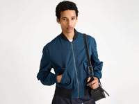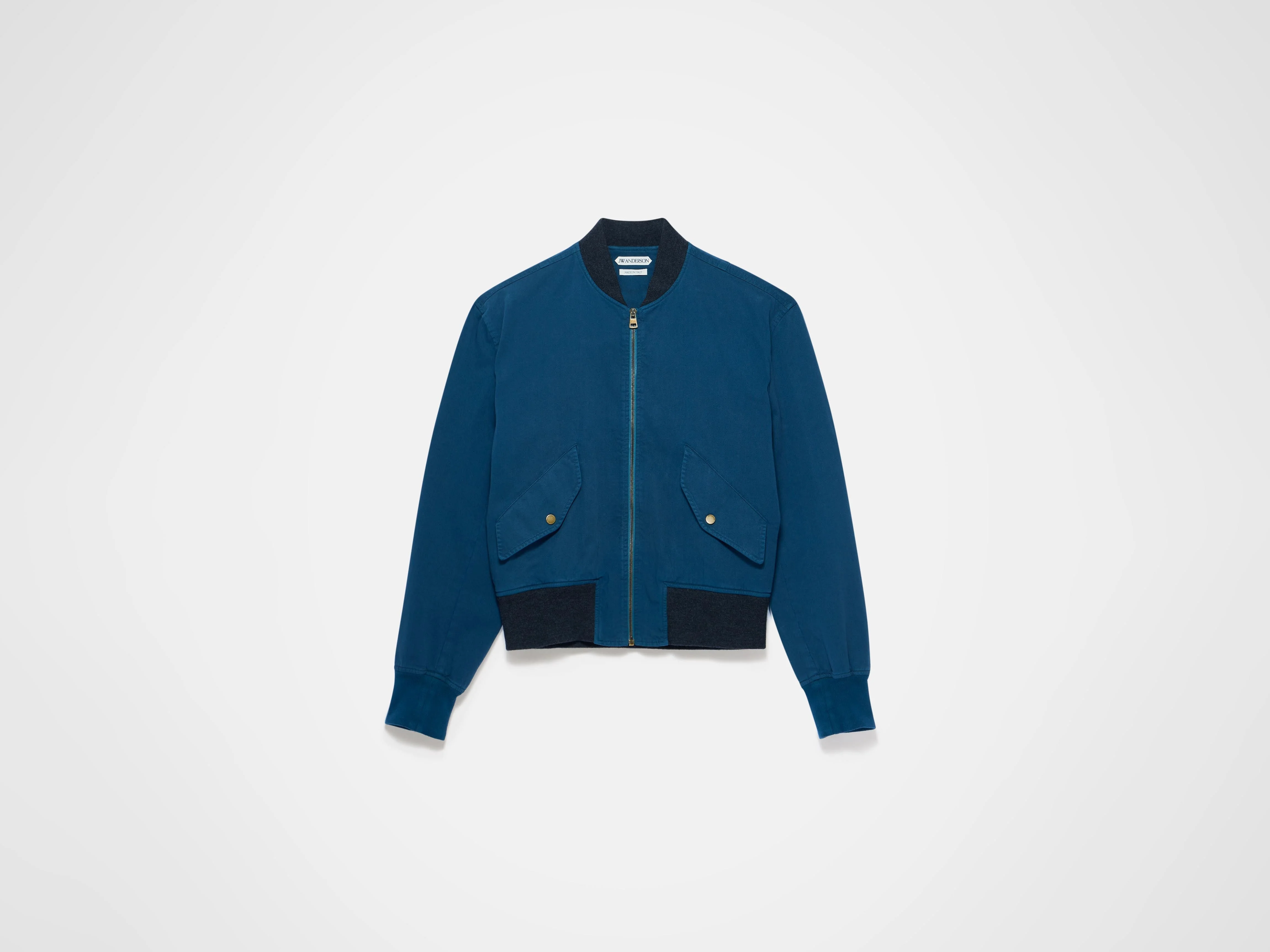 Bomber jacket in garment-dyed navy cotton with a washed vintage finish. Features contrast rib trims and metal zip fastening with logo puller. Colour variations are intentional, giving each piece a unique, lived-in character. Details - Colour: Washed Navy - Composition [Main]: 100% Cotton - Made in: Italy - Model [Wears]: Size 46, 189cm Tall - SKU: JK0386PG1955362