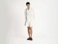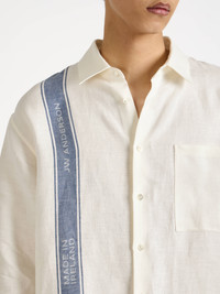 Shirt in off-white with blue contrast stripes, in the finest Irish linen. Features a classic fit silhouette with loafer stitch detailing and mother-of-pearl buttons. Details - Colour: Off White/Blue - Composition [Main]: 100% Linen - Made in: Italy - Model [Wears]: Size 46, 189cm Tall - SKU: SH0385PG1898614