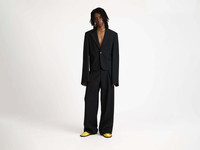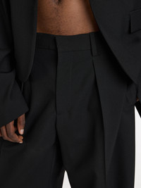 Straight leg trousers in black. Features welt back pocket, zip fly and logo tailored waist banding. Finished with leather logo patch. Details - Colour: Black - Composition [Main]: 100% Wool - Made in: Italy - Model [Wears]: Size 46, 185cm Tall - SKU: TR0421PG1927999