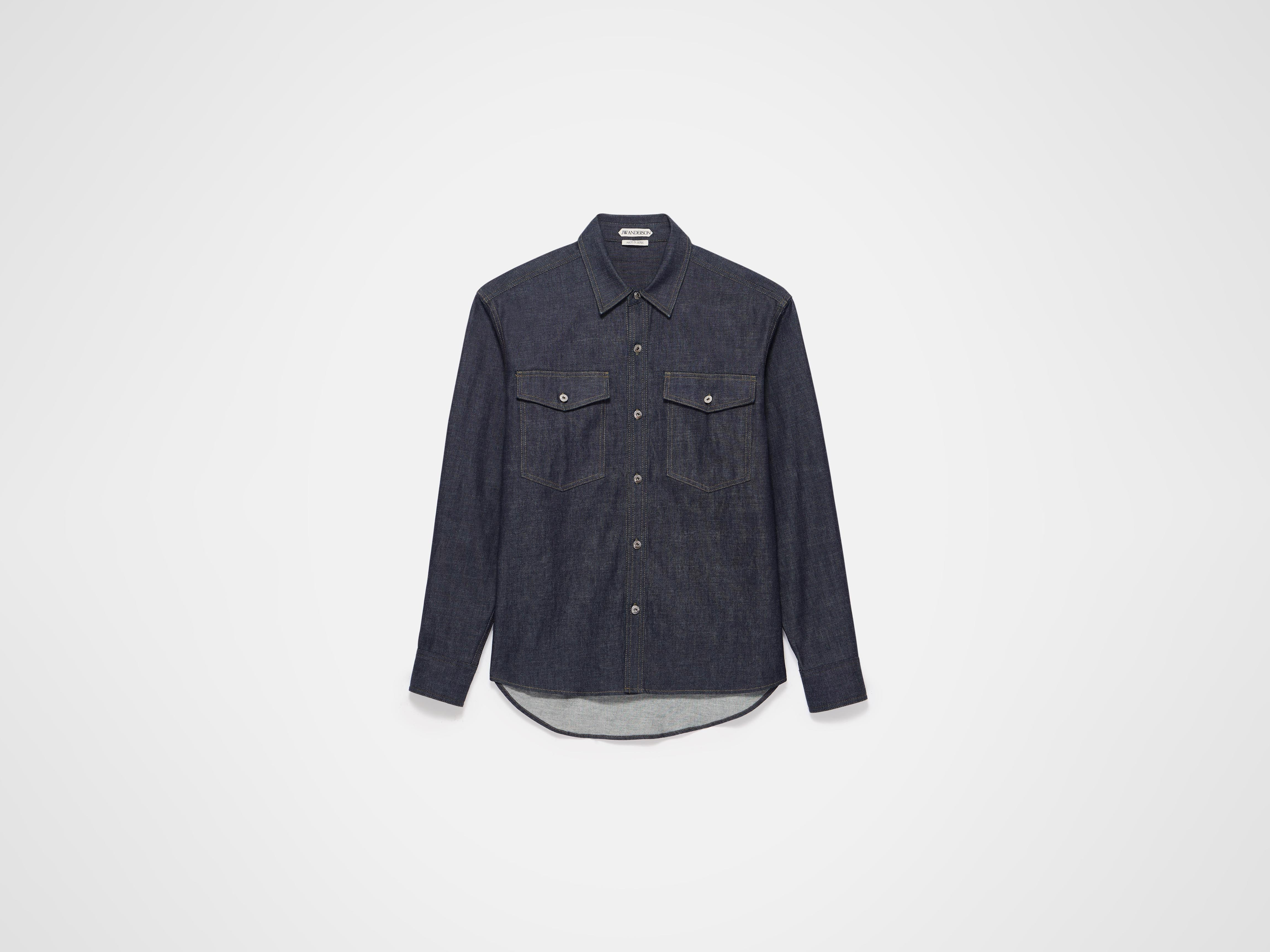 Crafted in Hiroshima, Japan, developed in collaboration with expert Japanese denim makers. Oversized shirt in indigo denim, features logo-engraved metal shank buttons, finished with leather logo patch on the back. Details - Colour: Indigo - Composition [Main]: 100% Cotton - Made in: Japan - Model [Wears]: Size S, 180cm Tall - SKU: DS0016PG1932870
