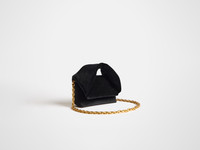 Small twister bag in smooth black nappa leather. Versatile design: with a twisted bow short handle and a removable antique gold-finish crossbody chain. Features a magnetic flap closure, finished with logo and gold embossing details. Details - Colour: Black - Composition [Main]: 100% Lamb Leather - Composition [Lining]: 100% Lamb Leather - Composition [Hardware]: 100% Zamak - Measurements: [H] 11cm | [L] 19cm | [W] 7cm - Made in: Spain - SKU: HB0776PG1895999