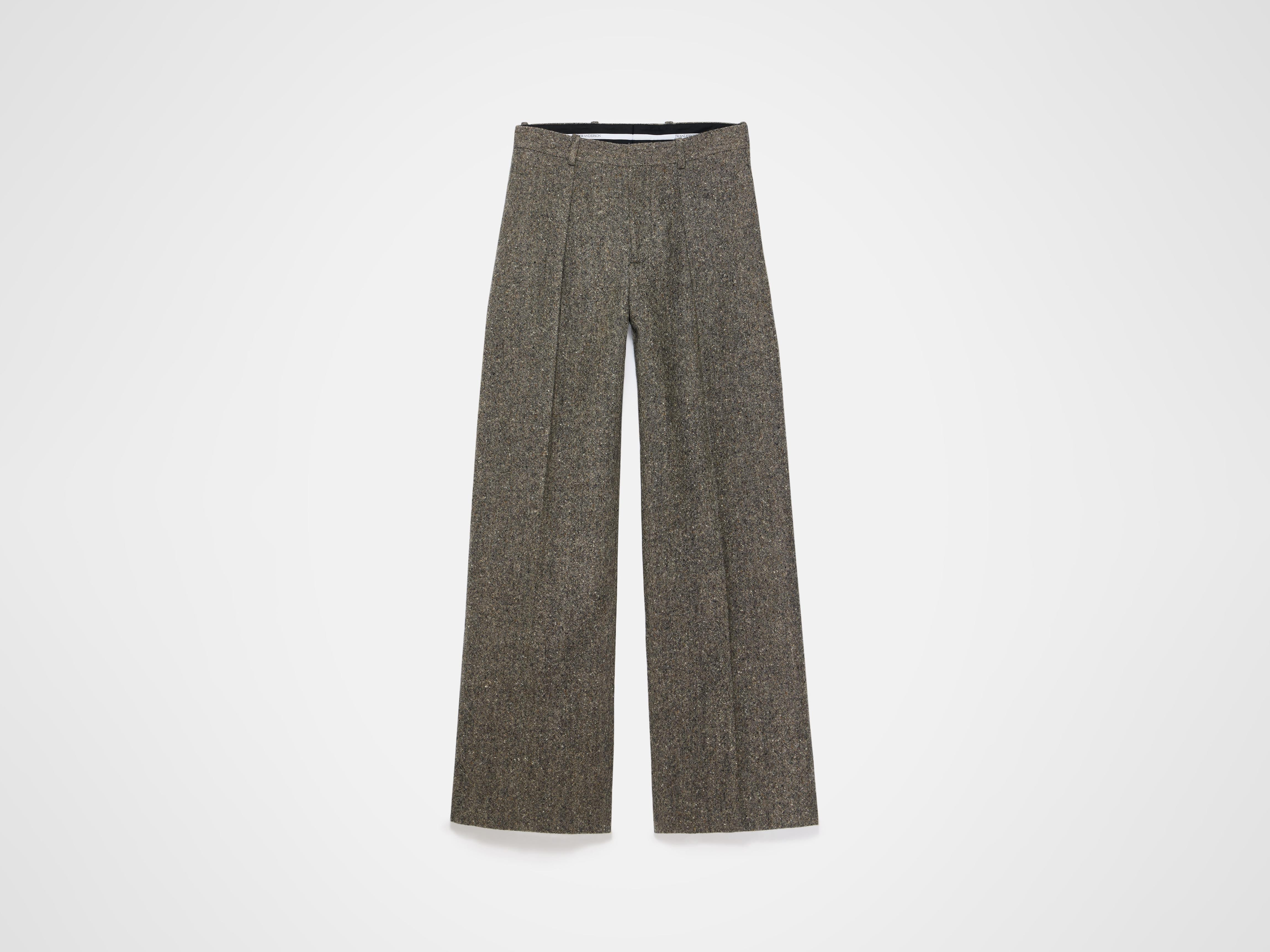 Straight leg trousers in black and beige. Features welt back pocket, zip fly and logo tailored waist band. Finished with leather logo patch ono the rear. Details - Colour: Black/Beige - Composition [Main]: 100% Wool - Composition [Lining]: 100% Cupro - Made in: Italy - Model [Wears]: Size 46, 189cm Tall - SKU: TR0421PG1879059