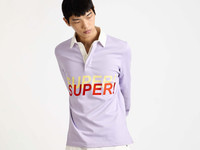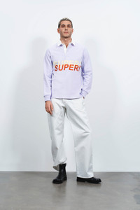 'Super Super' rugby polo top in washed purple jersey. Features a graphic satin stitch embroidery, a cotton twill collar and concealed placket. Finished with rib cuffs, side split at the hem and corozo buttons. Details - Colour: Purple - Composition [Main]: 100% Cotton - Made in: Portugal - Model [Wears]: Size S, 189cm Tall - SKU: JO0288PG1938700