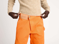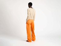Crafted in Hiroshima, Japan, developed in collaboration with expert Japanese denim makers. Twisted workwear denim jeans in bright orange. Features a large leather logo patch and anchor stitched pocket. Finished with engraved metal shank buttons, logo rivets and orange binding. Details - Colour: Bright Orange - Composition [Main]: 100% Cotton - Composition [Lining]: 100% Cotton - Made in: Japan - Model [Wears]: Size 26, 180cm Tall - SKU: DT0127PG1933433