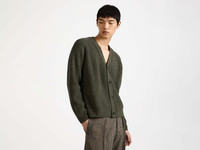 V-neck cardigan in hunter green, with a rib knit crated by a specialist in yak. Finished with horn buttons. Details - Colour: Hunter Green - Composition [Main]: 54% Yak Wool, 46% Sheep Wool - Made in: China - Model [Wears]: Size S, 189cm Tall - SKU: KW1422YN0463550