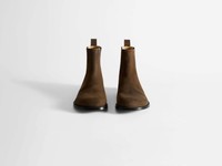 Chelsea Loafer Boot in Chocolate Brown. Crafted in Italy, this Chelsea boot is detailed with off-white loafer box stitching and a blind-embossed JWA logo. Designed with an improved fit and additional foam for comfort. Details - Colour: Chocolate Brown - Composition [Outer]: 100% Split Cow Suede Leather - Composition [Lining]: Split Grain Calf Leather - Composition [Outsole]: 100% Split Grain Calf Leather - Made in: Italy - SKU: CT0003LA0319660