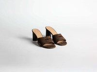 WOMENS LOAFER MULE HEELED SANDAL IN CHOCOLATE BROWN