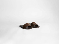 Open Toe Slides in Brown. Crafted in Italy, this slide features an upper made from suede leather and a nappa leather lining, finished with loafer off-white box stitches. Designed for comfort as well as refinement, it is finished with a foam insole, a nubuck leather outsole suitable for indoor and outdoor wear, and the JW Anderson logo woven label on the insole. Details - Colour: Brown - Composition [Outer]: 100% Split Cow Suede Leather - Composition [Lining]: 100% Cow Full Grain Leather - Composition [Outsole]: 100% Split Grain Calf Leather - Made in: Italy - SKU: FL0009LA0364600
