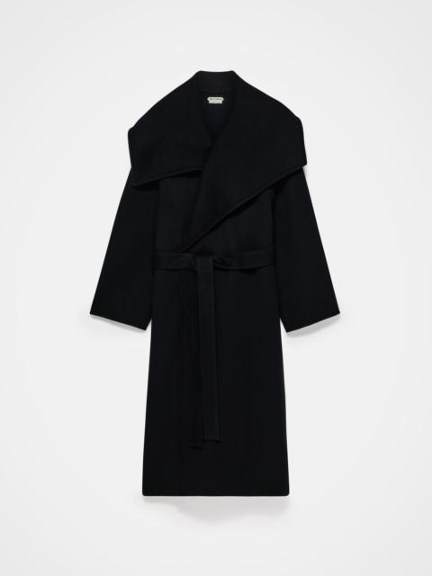 WOMENS LONGLINE WRAP FRONT COAT IN BLACK