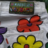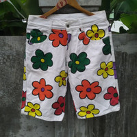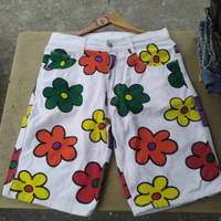 Vintage Blush-on Retro Short Pant Denim Painted Flower