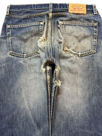Distressed Denim - Vintage 90s Levis 501 Faded Wash Distressed Style Jeans
