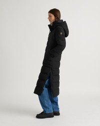 Cambridge is a long, slim-fit jacket with side vents and a puff collar hood. - Comfort zone: -20C to -25C - Fixed hood with adjustable drawcord - Cozy inner collar - Center front zipper closure - Zippered front pockets - Quilted construction with down insulation Fabric details & care - Water-resistant, breathable, and windproof - Shell: Soft Touch in 100% recycled polyester - Lining: 100% polyester - Insulation: 3M Featherless FL700 Thinsulate - Machine washable Sizing & fit - Semi-fitted - Model is 5'10" and wears a size S - Fits true to size