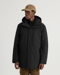 Kanuk's bestselling jacket, Mont-Royal is a mid-length insulated coat built for daily wear. - Comfort zone: -20°C to -25°C - Duck down fill - Fixed hood with bungee drawcord - Center front zipper with snap placket - Zippered hand pockets - Inset storm cuffs Fabric details & care - Water-resistant, breathable, windproof - Shell: Mini-Ottoman in 100% recycled polyester - Lining: Soft Touch in 100% polyester - Insulation: 90/10 RDS duck down, 800 fill power - Dry clean only Sizing & fit - Center back length for size M: 33.5" / 85 cm - Relaxed fit - Model is 6'3" and wears a size M - Fits true to size