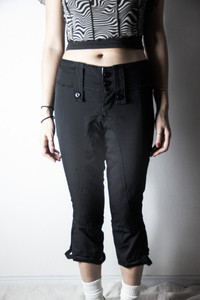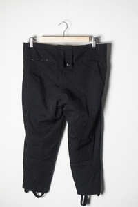 Junya Watanabe for Comme des Garçons pants, from AW05 collection. In excellent condition, no flaws or damages to note. Item Code: JQ-P011 Marked Size: S Material: Wool 100% Condition: 9/10 Waist: 41cm Front Rise: 28cm Inseam: 54cm Length: 76cm Innovative and daring design for CDG by Junya Watanabe results in, as always, a curious piece of very wearable, yet detailed and interesting design. Features include the buttoned belt-loops (with some buttons intentionally absent), adjustable cuffs, and a unique construction with some raw fabrics visible at the seams. Fits tight, best for a size 28 or so, perhaps up to a size if with a very thin build. Offers and trades welcome, interested in brands like Yohji Yamamoto, Comme des Garçons, Julius, Song for the Mute, Rick Owens, CCP, Guidi, etc.