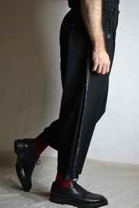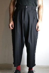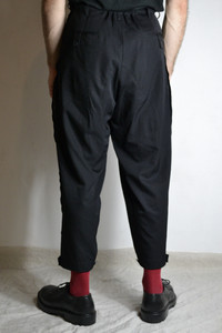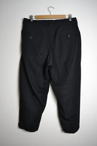 Yohji Yamamoto Pour Homme pants, from AW20 collection. In excellent condition, almost no sign of wear, no flaws or damages to note. Item Code: HR-P63-143 Marked Size: 2 Material: Laine Wool 100% Condition: 9/10 Waist: 43cm Rise: 34.5cm Inseam: 66.5cm Thigh: 39cm Leg Opening: 15.5cm One of my favourite recent pants from YYPH, these are a subtle pair that make an excellent balance of numerous elements for a distinguished fit. An obvious stripe of text by the manufacturer of the wool, overlapping the seams, marks the material which is subtly different from Yohji's classic wool gabardine; both lightweight and similarly structured, notably comfortable. Other features include an array of buttoned tabs for the pockets and hems, front tucks, and an internal drawstring. Seen worn on a size US30/EU46, these will fit a few sizes above and many below, easily belted and internally cinched. A great pair of pants that just have a perfect fit. Offers and trades welcome, interested in brands like Yohji Yamamoto, Comme des Garçons, Julius, Song for the Mute, Rick Owens, CCP, Guidi, etc. Purchases in Australian dollars are absolutely welcome. Please check out my Instagram for related content: @karasu.clothing