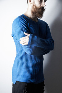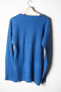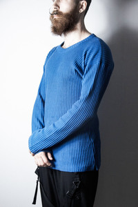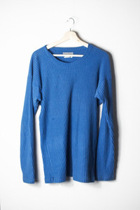 Yohji Yamamoto Pour Homme knit, from AW94 collection. In great condition, minor stain on chest, barely noticeable. Item Code: HV-T13-003 Marked Size: M Material: Cotton Condition: 8/10 A fun blue knit, from Yohji's much-loved AW94 collection. A simple piece, rendered in a beautiful, vibrant blue. Features include the ribbed fabric, with subtle splits at the hems on the size. Seen worn loosely an EU50, fits quite large and freely. Offers and trades welcome, interested in brands like Yohji Yamamoto, Comme des Garçons, Julius, Song for the Mute, Rick Owens, CCP, Guidi, etc.