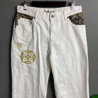 Follow karatt and checkout my other items. ✅ DON’T WAIT FOR PRICE DROPS, OPEN TO SERIOUS OFFERS. Karakuri Tamashi Embroidered Jean Tag Label :- Karakuri Tamashi Size tag :- 30 All measurements were taken lying flat: WAIST :- 15 inch FRONT RISE :- 10.5 inch THIGH :- 12 inch LEG OPENING :- 8 inch INSEAM :- 32.5 inch HIP:- 18 inch CONDITION :- GOOD Item has been used or worn previously. Kindly see all pictures details. 🤝 BUY WITH CONFIDENCE. ✅ PLEASE FEEL FREE TO ASK ANY QUESTION BEFORE PURCHASE. ❌ NO REFUND/RETURN. 📦 SHIPPING USING EXPRESS COURIER SERVICE ETA 3-10 days delivery time depends on location. **IMPORTANT: Telephone number is required for shipping information