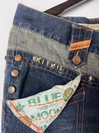 Please do use measurements below to see if this will be a good fit first before purchasing:- (All measurements were taken lying flat) Vintage Blue Moon Blue Surf Jeans Tag Label :- Blue Moon Blue Size tag :- 28 Material:- 100% Cotton Measurements: WAIST :- 34 inch INSEAM :- 30.5 inch LEG OPENING :- 8.5 inch FRONT RISE :- 9 inch THIGH :- 11.5 inch GOOD CONDITION (USED CLOTHING) There's one button for back belt loop is missing. (Refer picture) Item has been used or worn previously. Kindly see all pictures details. π BUY WITH CONFIDENCE. β PLEASE FEEL FREE TO ASK ANY QUESTION BEFORE PURCHASE. β REASONABLE OFFER WILL BE CONSIDERED β NO REFUND/RETURN. π¦ POST USING DHL EXPRESS SHIPPING !!! Item will be shipped out within 1-2 business days upon payment. ETA within 7-10 days worldwide **IMPORTANT: Telephone number is required for DHL shipping detail Thank you so much for your interest Follow karatt