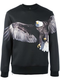 Black eagle print sweatshirt from Neil Barrett featuring a crew neck, long sleeves, dropped shoulders, a straight hem and side zip details. Polyester 100%. In very good condition, worn only 3 times to try out, never been washed. Incredible find! New price over 500 euros! See my NB T shirt as well...