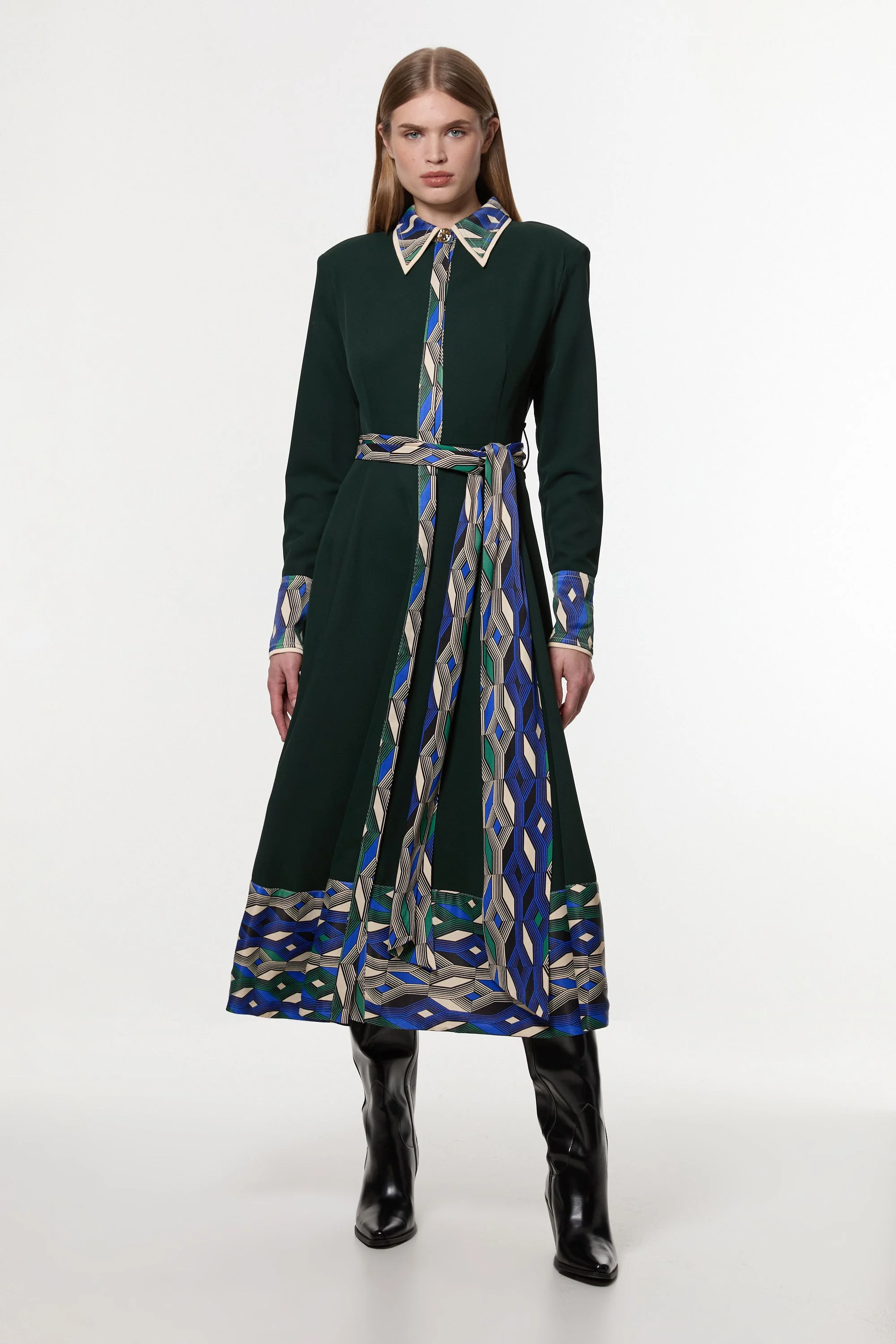 Architectural influences, brought to life through print; Karen Millen presents a new collection in collaboration with Amelia Graham. Feel elegant in our midi dress, with a universally flattering silhouette, vibrant, printed panels, and a belted waist for a cinched silhouette. Style this dress with heeled boots for an outfit that will turn heads from office days days to upcoming occasions and events. Amelia Graham Printed Twill Border Print Midi Dress High Quality Twill Fabric Statement Printed Paneling Flattering Fit and Flare Silhouette Belted Waistline Product Details & Care 100% Polyester. Wash at 30. Model wears UK Size 8/ US Size 4. Model height approx: 5"9. Length approx: 140cm