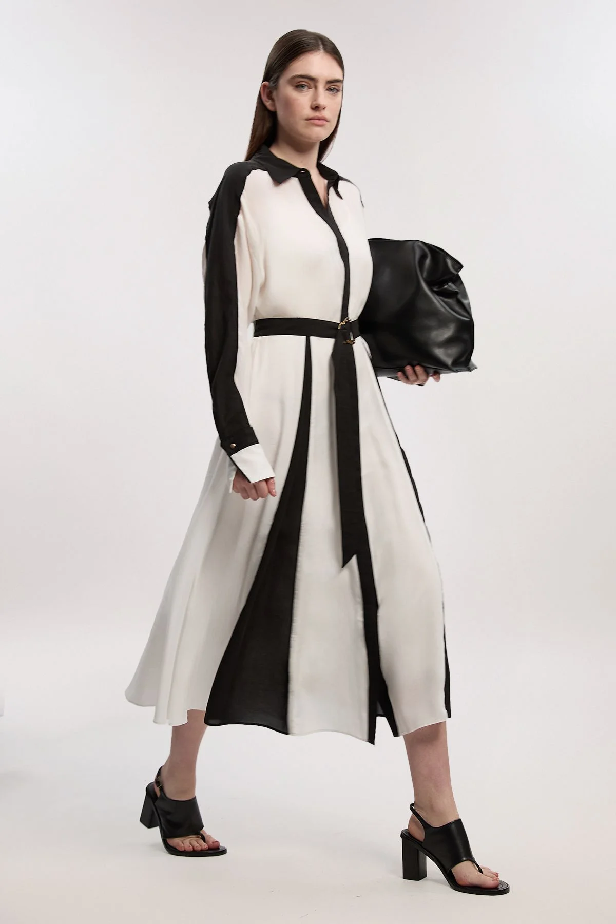 Colour Block Fluid Tencel Woven Maxi Shirt Dress
