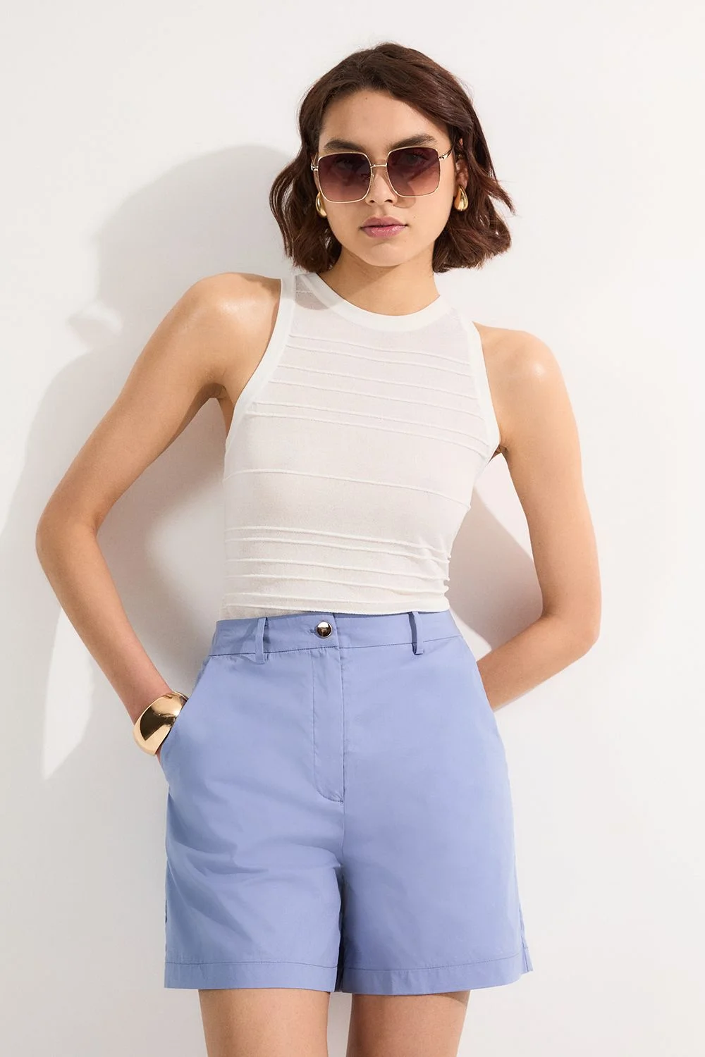 These sophisticated high-waisted city shorts from Karen Millen offer the perfect balance of comfort and style for your daytime wardrobe. The structured woven fabric creates a polished look whilst maintaining breathability for all-day wear. Style with a fitted sleeveless top for a contemporary summer ensemble, or pair with a crisp white shirt for a more tailored appearance. These versatile shorts are ideal for casual brunches, weekend shopping trips, or relaxed garden parties. Complete your look with flat sandals and statement sunglasses for daytime outings, or dress up with ballet flats and delicate jewellery for casual gatherings with friends. The classic design ensures these shorts will remain a wardrobe staple season after season. High-waisted design for a flattering silhouette Woven cotton-rich fabric for breathable comfort Structured city short with clean-cut finish Decorative button detail on the waistband Belt loops for versatile styling options Product Details & Care 65% Cotton. 35% Polyester. Wash with similar colours. Wash inside out. Iron on reverse. Model wears UK Size 8/ US Size 4. Model height approx: 5"9. Length approx: 43cm