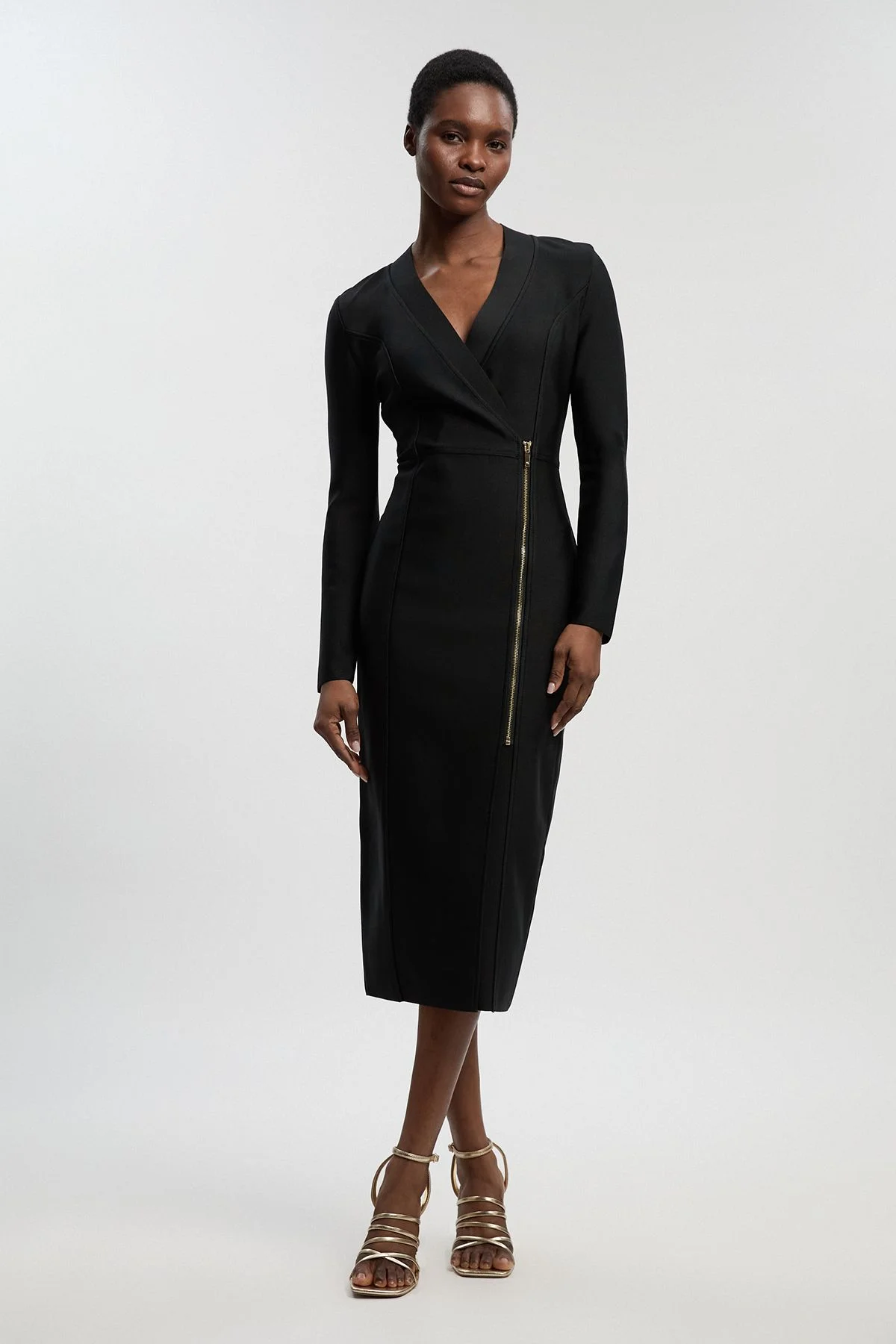Figure Form Bandage Asymmetric Zip Detail Midi Dress