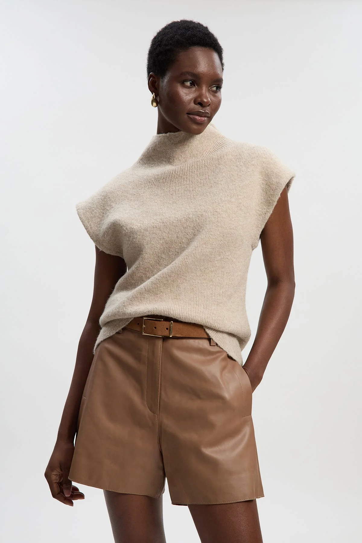 These Karen Millen leather tailored shorts offer a contemporary twist on daywear essentials. The structured silhouette creates a polished look that can be styled multiple ways for various casual occasions. The tailored cut and luxurious texture reflect the brand's commitment to expert craftsmanship while maintaining a contemporary edge that transitions effortlessly from day to evening casual events. These shorts embody sophisticated simplicity with a touch of understated glamour. Tailored leather shorts High-waisted design Sleek button and zip fastening with belt loops Subtle side pockets Product Details & Care 100% cotton. lining 100% polyester. Model wears UK8/US4. Model height 5"9. Inseam length: 9.5cm