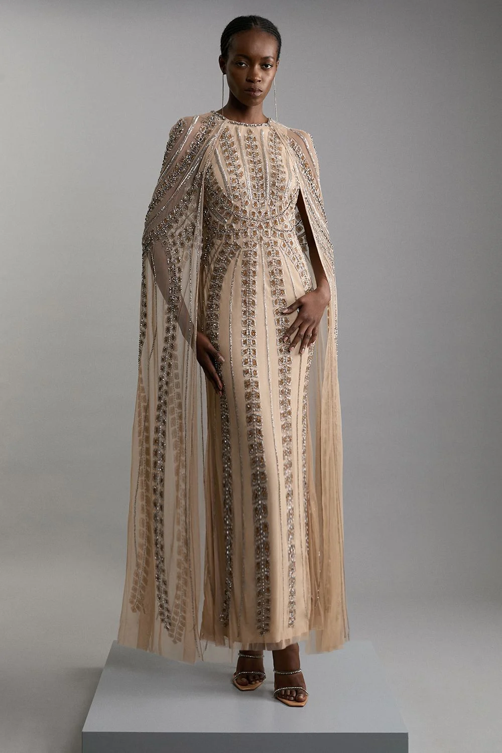 Petite Premium Embellished Cape Maxi Dress