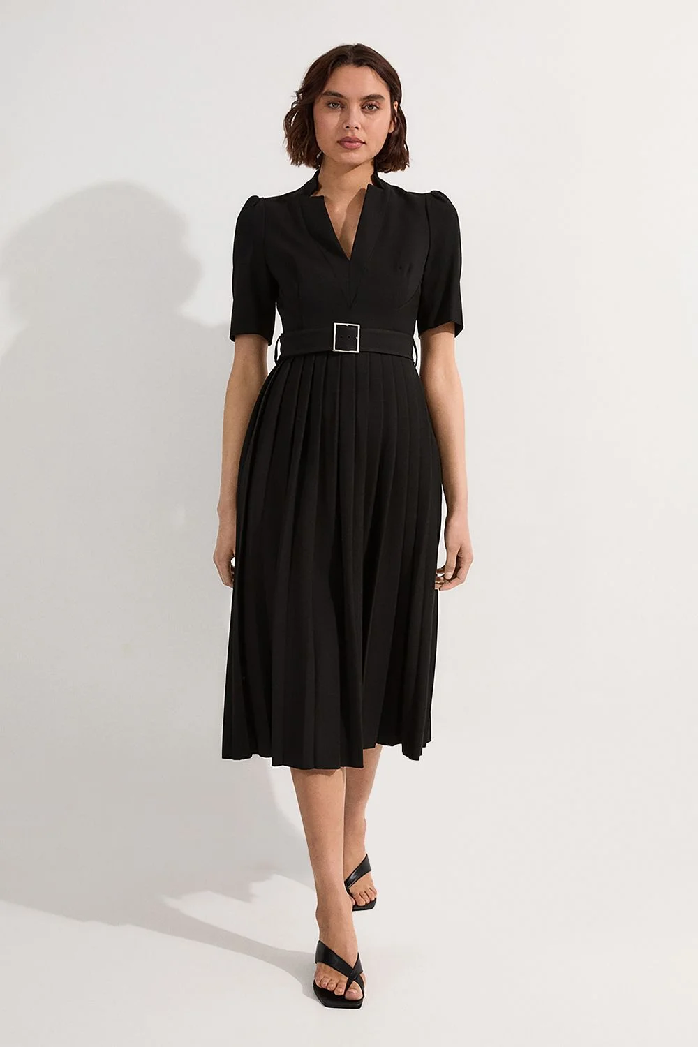 Petite Tailored Structured Crepe Forever Pleat Midi Dress