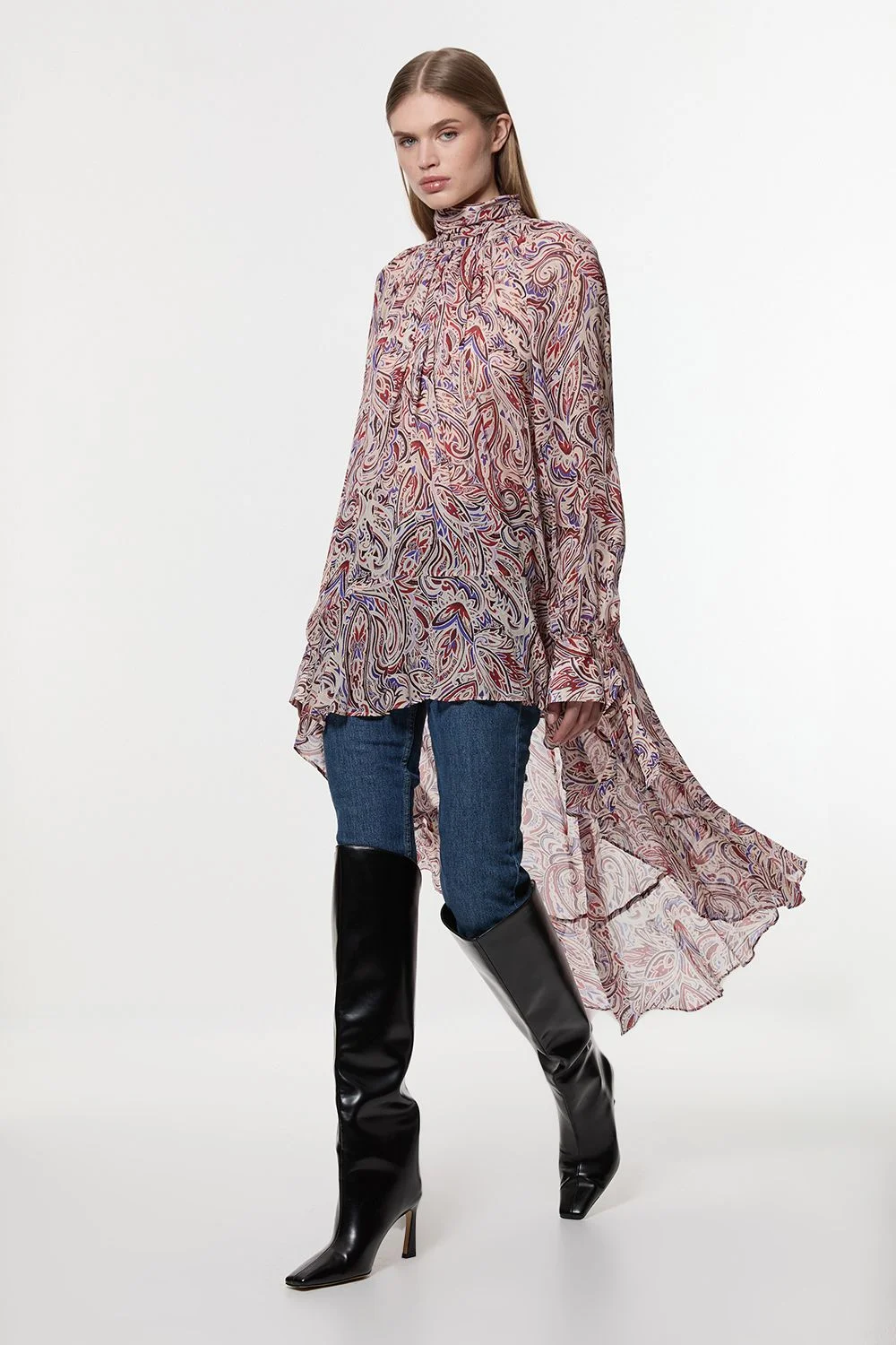 Petite Viscose Crinkle Paisley Frill Detail Tunic
