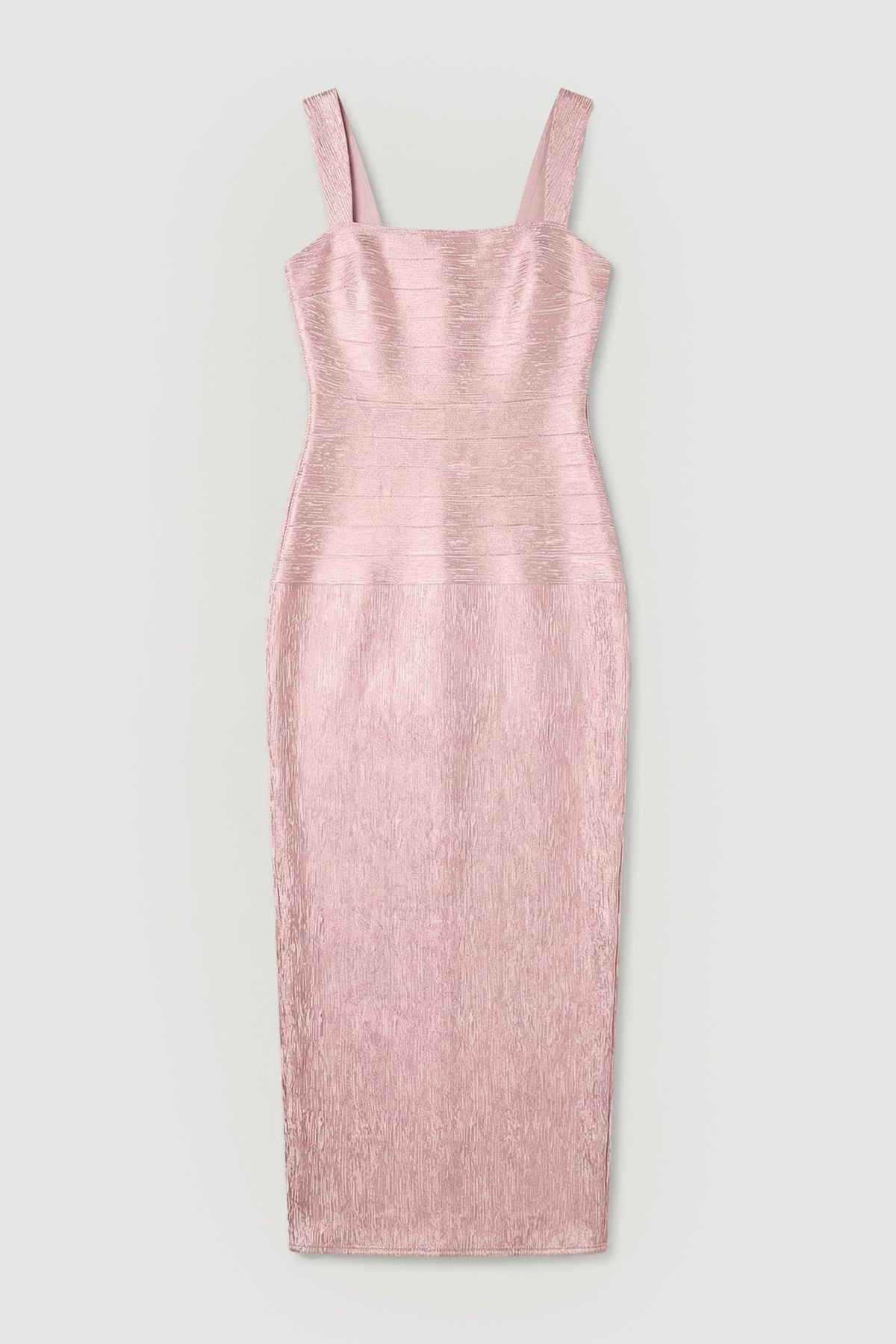 - Striking foil metallic finish that catches the light beautifully with every movement - Figure-enhancing knit fabric that contours to your curves for a flattering silhouette - Elegant square neckline with wide straps for comfortable support - Floor-sweeping maxi length measuring approximately 125cm from centre back - Sophisticated form-fitting design with textured detailing throughout Command attention at your next formal occasion in this show-stopping maxi dress from Karen Millen. The form-fitting silhouette beautifully accentuates your curves whilst the metallic foil finish adds a touch of glamour perfect for evening events. The square neckline frames the decolletage elegantly, whilst the wide straps provide comfortable support throughout the night. Style with minimal jewellery to let the dress take centre stage - a pair of delicate drop earrings and a slim bracelet will complement without overwhelming. Complete your ensemble with strappy heeled sandals and a compact clutch for weddings, races or black-tie events. This statement piece requires little embellishment - its striking texture and figure-enhancing cut speak volumes about your refined taste and confidence. Product Details & Care Main: 97% Recycled Polyester, 3% Elastane/ Spandex. Coating: 100% Polyethylene. Wash 30 synthetics cycle. Model wears UK size UK L. Models height approx 5"9. Length approx: 125cm from centre back.
