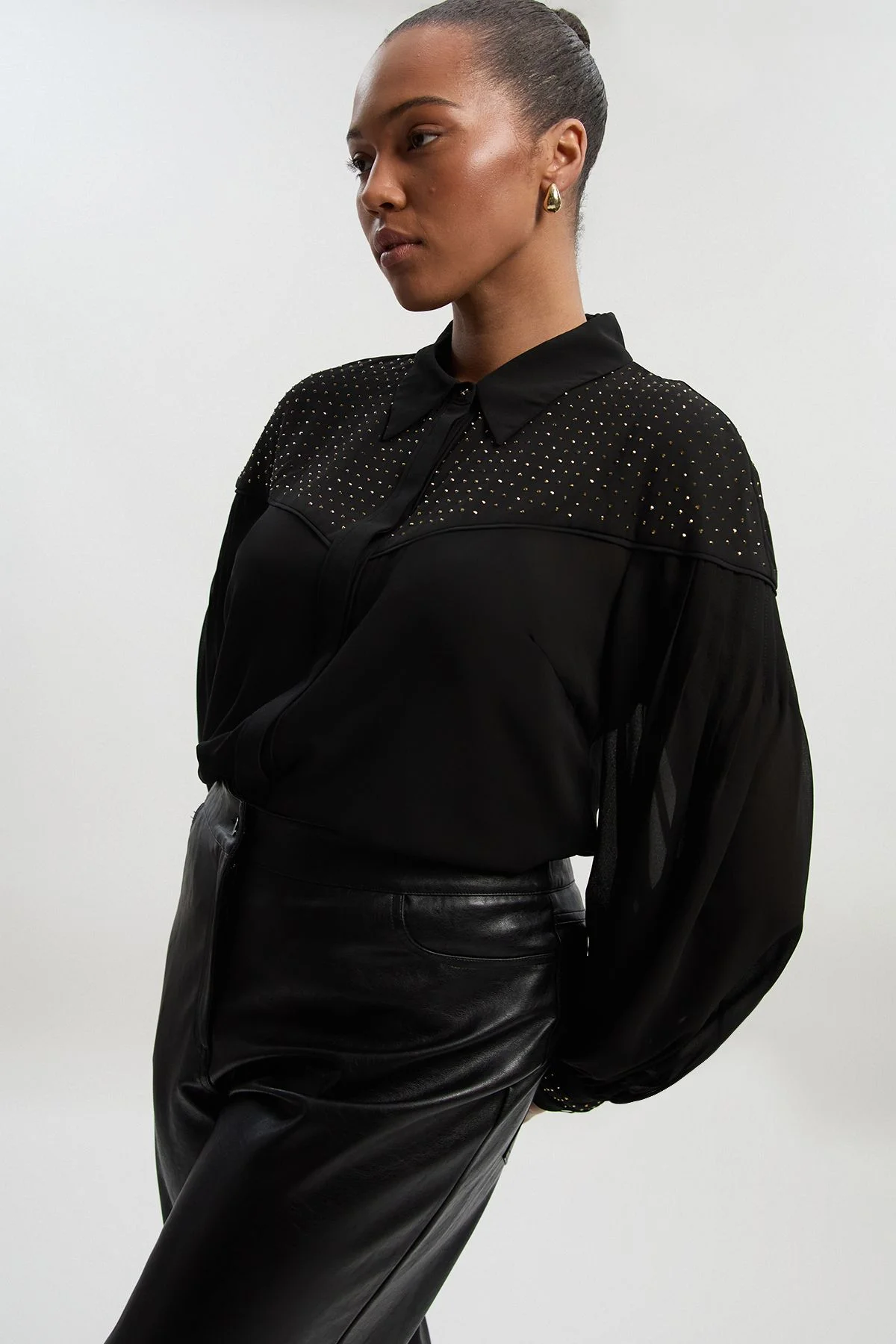 Plus Size Hotfix Studded Long Sleeve Woven Shirt