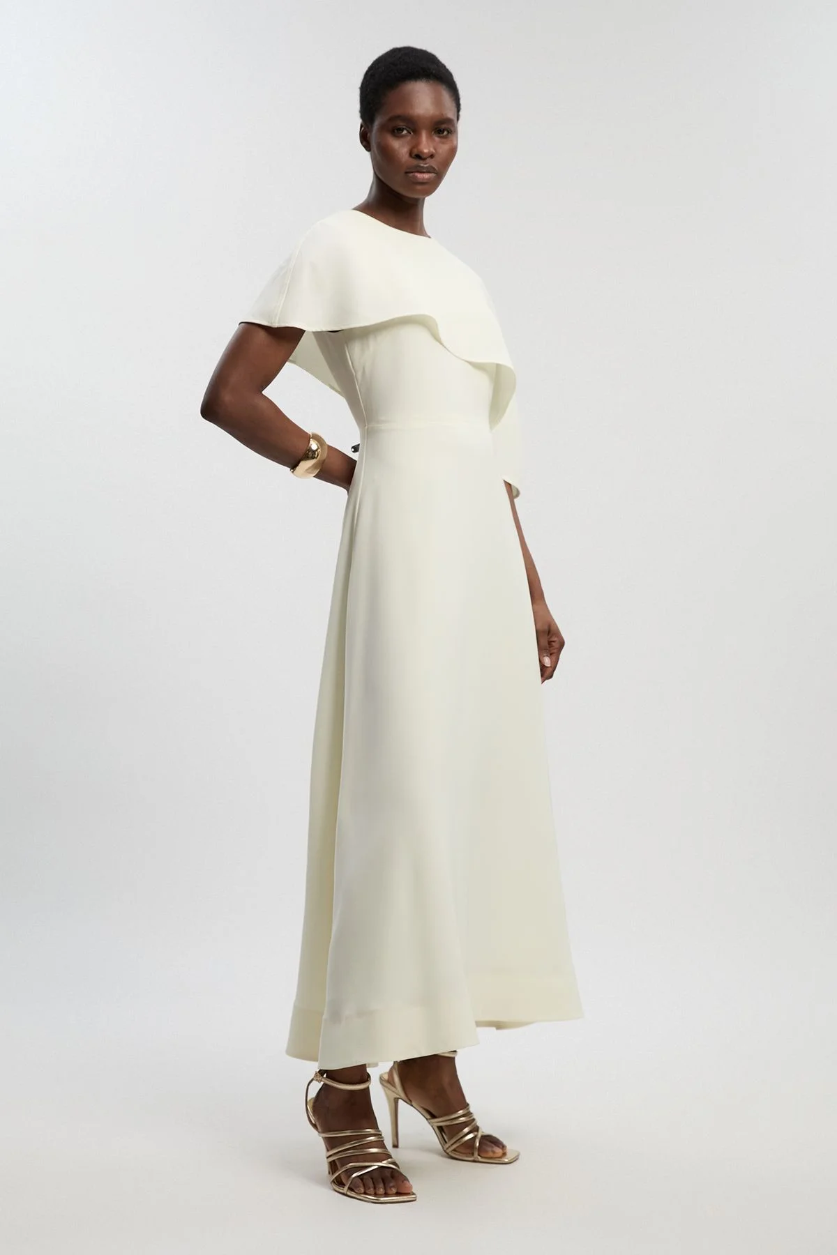 Soft Tailored Cape Detail Tailored Midi Dress