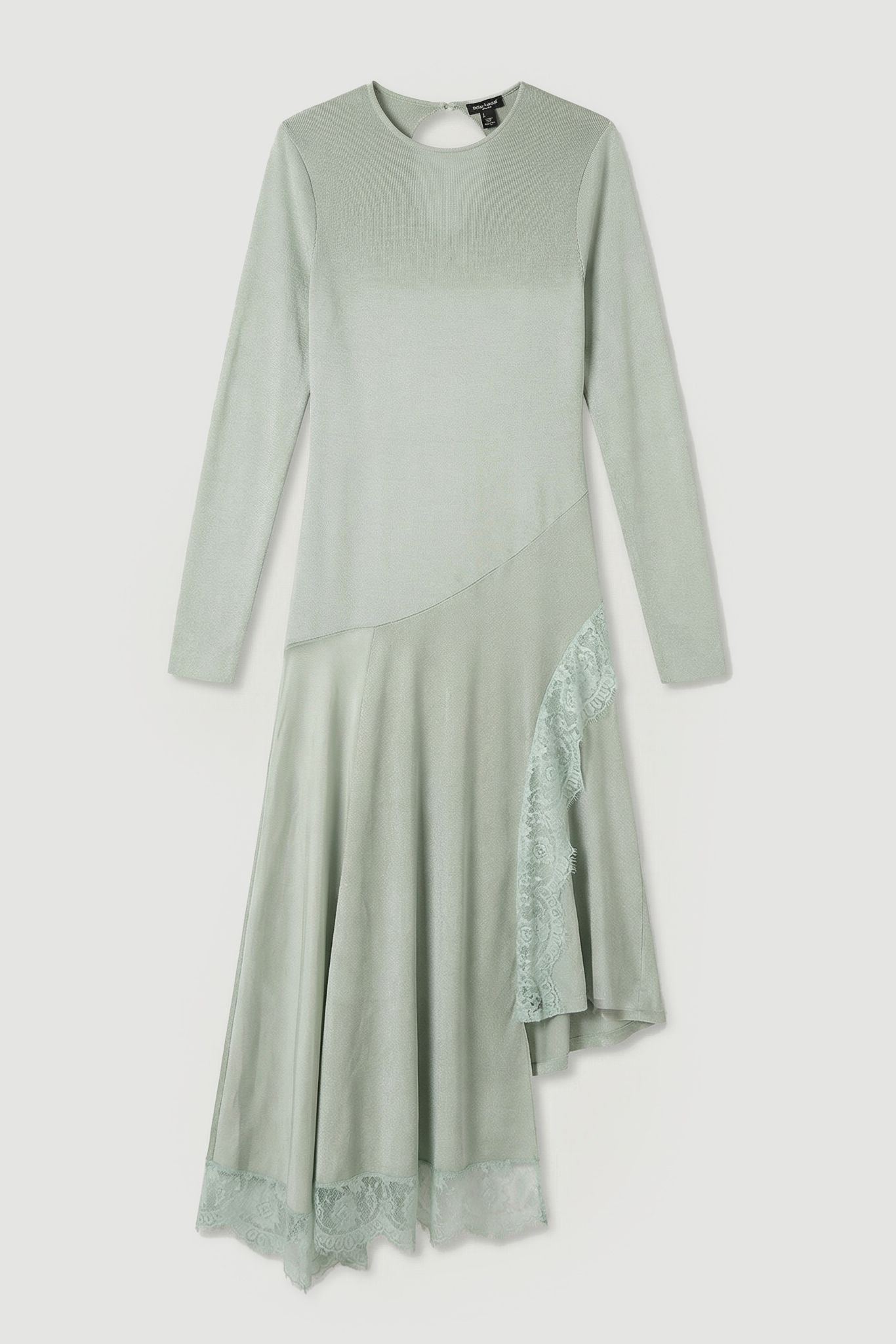 Viscose Blend Slinky Sheer Lace Detail Asymmetric Knit Maxi Dress