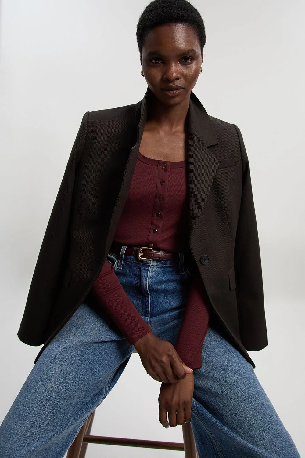 - Ribbed texture bodysuit with elegant button-up front detail - Flattering scoop neckline for a feminine silhouette - Long sleeves offering versatile styling options year-round - Crafted from a cotton-viscose blend with stretch for comfort and shape retention - Slim fit design ensures a sleek, contoured look This Karen Millen ribbed bodysuit combines timeless style with modern practicality. The button-up front adds visual interest while the scoop neckline frames your decolletage beautifully. Perfect for casual daywear, style it with high-waisted denim jeans and a tailored blazer for a polished weekend look. The bodysuit's slim fit and stretch fabric ensure it sits comfortably against the body without bunching or riding up. For family gatherings, pair with wide-leg trousers and flat loafers, or dress down with your favourite denim and trainers for coffee dates. The versatile design works equally well layered under cardigans during cooler months or worn alone when temperatures rise. This wardrobe essential embodies the sophisticated craftsmanship Karen Millen is known for, offering a foundation piece that transitions effortlessly from day to night. Product Details & Care Main: 46% viscose, 45,9% cotton, 8.1% elastane. Model wears UK S. Model height: 5"9. Length approx 38cm