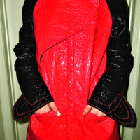 Balenciaga by Nicholas Ghesquiere SS2011 Runway look 1 red coat US 8 Lining is 100% silk and outer is 85% cotton 15% polyethylene. Rare archival coat from the iconic SS11 collection under Nicolas Ghesquière. This piece debuted on the runway in a houndstooth print — this version features a striking solid red body with glossy black contrast sleeves in a sculptural silhouette. The coated textile has a cracked, almost leather-like surface finish, giving it a futuristic, industrial feel while remaining lightweight and wearable. Condition: Fair vintage condition – notable cracking and surface wear throughout the coated textile, particularly around the collar and seams (see detail photos). Lining is in good condition. Priced accordingly.