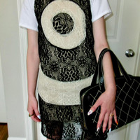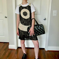 Vintage Chloe black and white/cream optical illusion avant garde dress 100% silk lace. size XS / US 2.