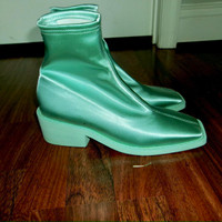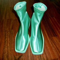 Turquoise MM6 Maison Martin Margiela Satin Ankle boots with squared toes are super cute and fun. wore them once for a shoot.